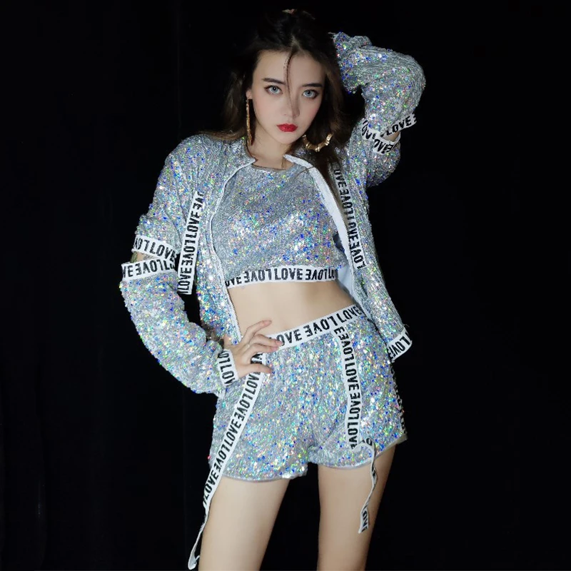 Hot Offer Jazz Dance Costumes Fashion Sequin Coat Hip Hop Clothing Adult Street Dancing Outfits Women Singer