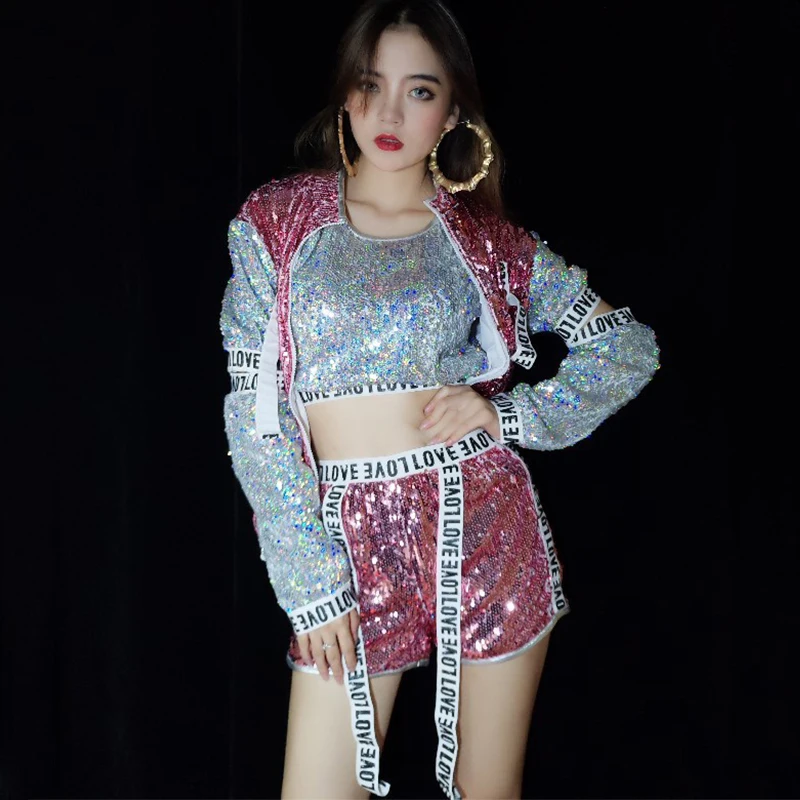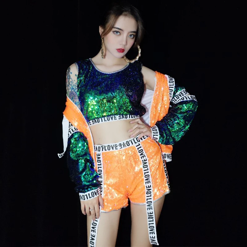 Hot Discount Jazz Dance Costumes Fashion Sequin Coat Hip Hop Clothing Adult Street Dancing Outfits Women Singer