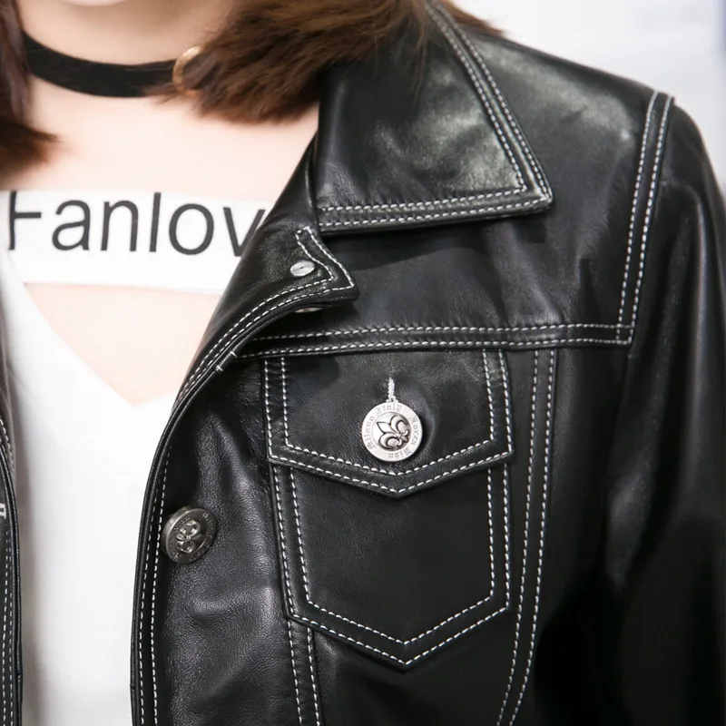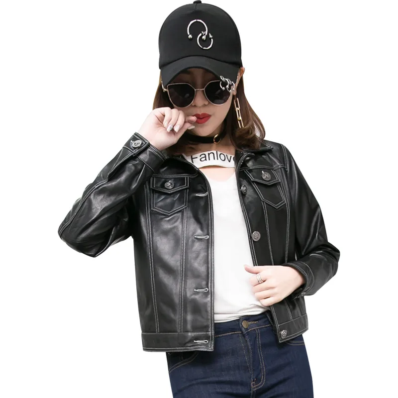 Mega Discount Genuine Leather Jacket Women Clothing 2019 Autumn Winter Jackets Real Sheepskin Coat Pockets Short